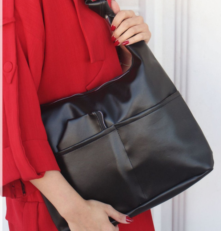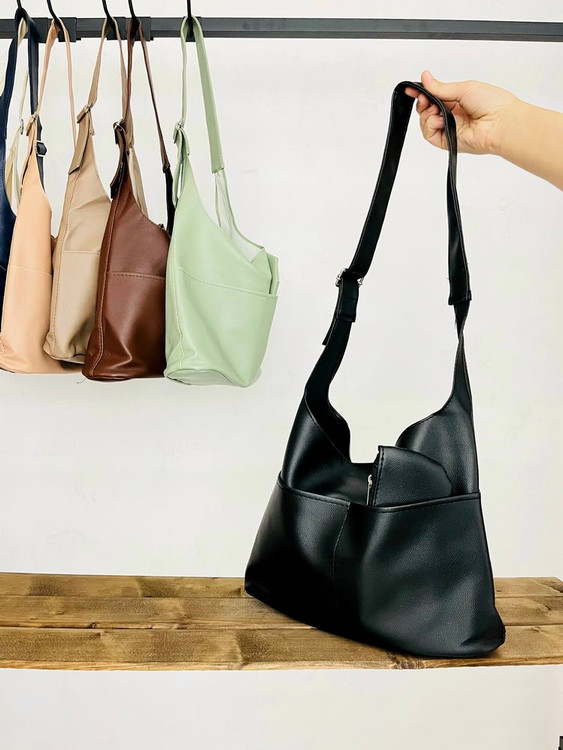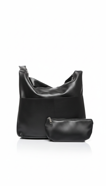 کیف دوشی چرم شل برفا سایز بزرگ دارای یک کیف آرایش و سر زیپ های خارجی
