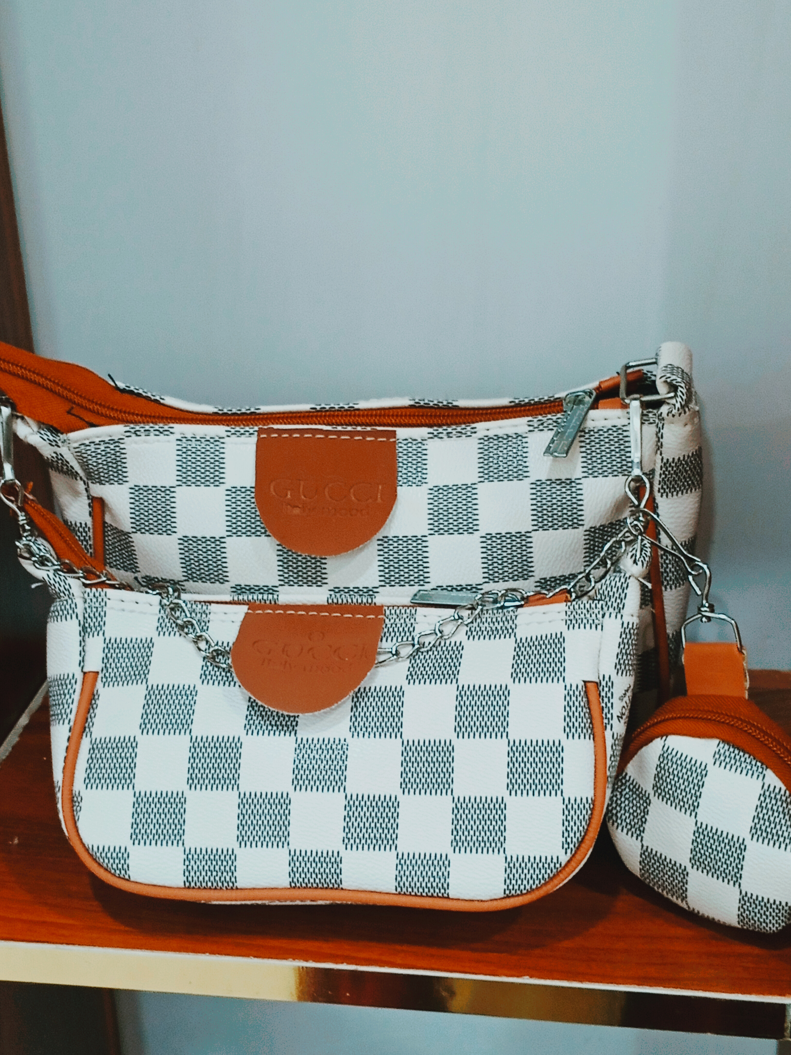 کیف سع تیکه دوشی دارای بند بلند ،جای هندزفری،یک کیف کوچک و یه کیف بزرگ قابل استفاده هر سه کیف کنار هم و یا مجزا.